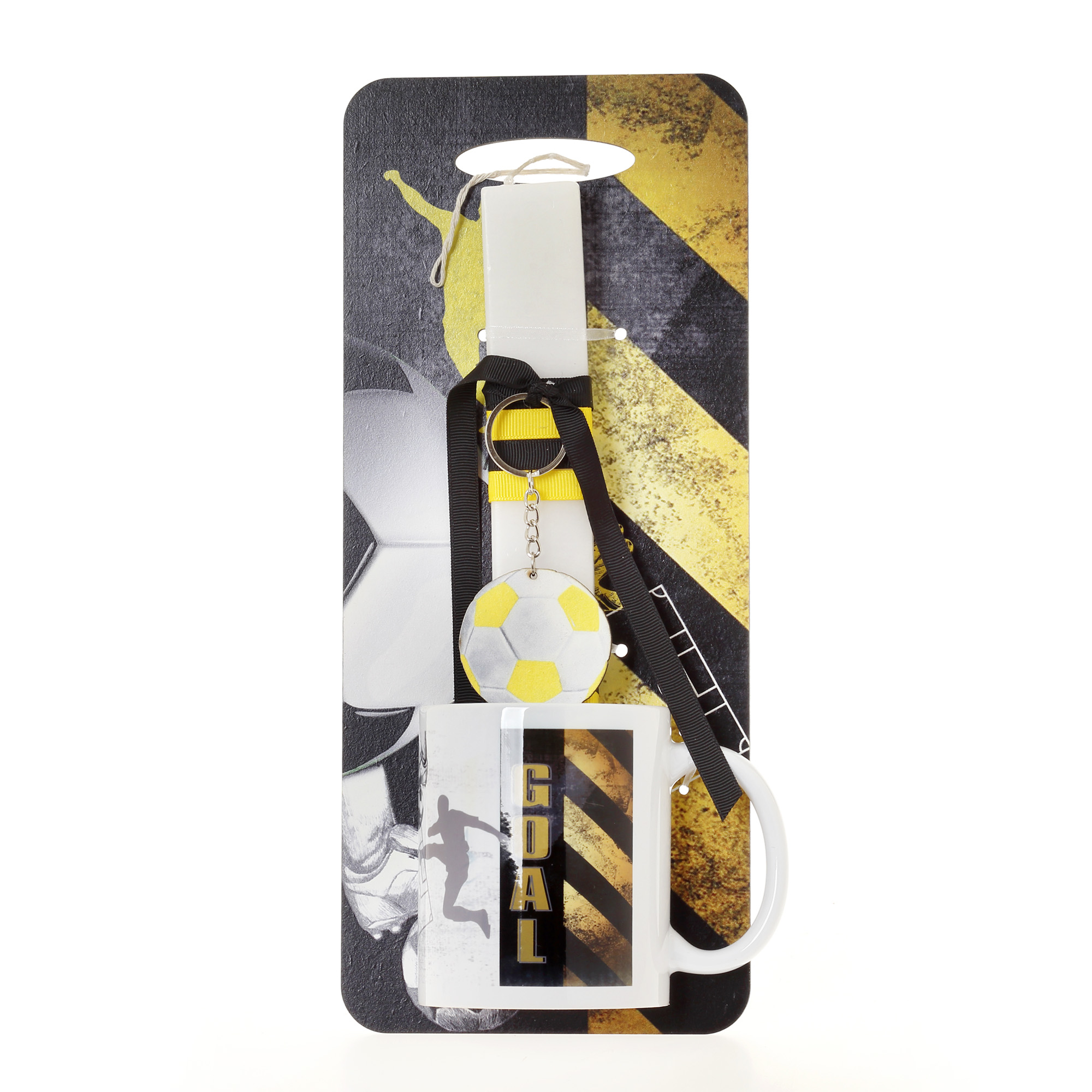 Πασχαλινή λαμπάδα με πλάτη και κούπα Ποδόσφαιρο κίτρινο & κούπα
