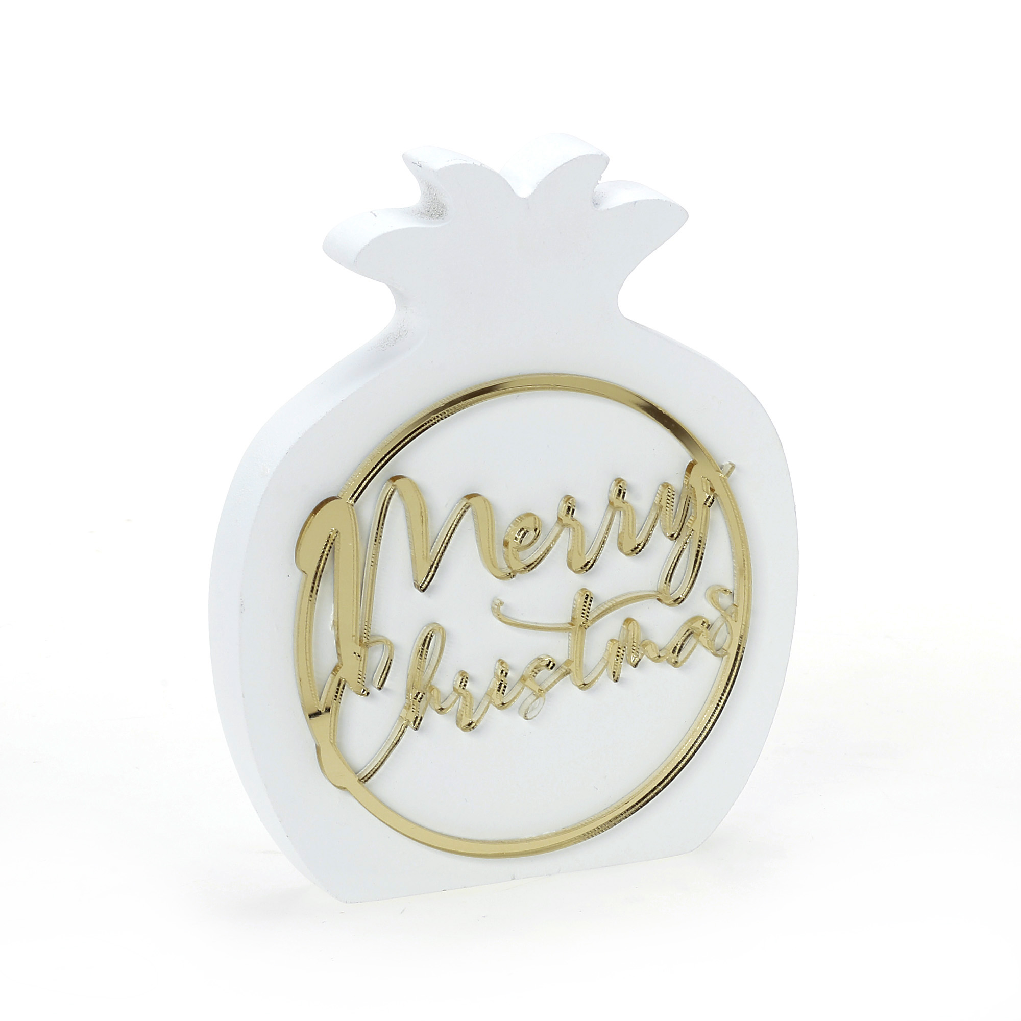 Ρόδι ίσιο ξύλινο merry Christmas 15 cm και σε διάφορα χρώματα.