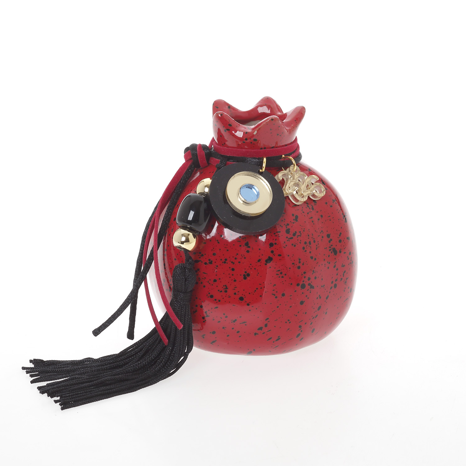 Ρόδι κόκκινο μαύρο πορσελάνη στολισμένο με μάτι 7,5cm