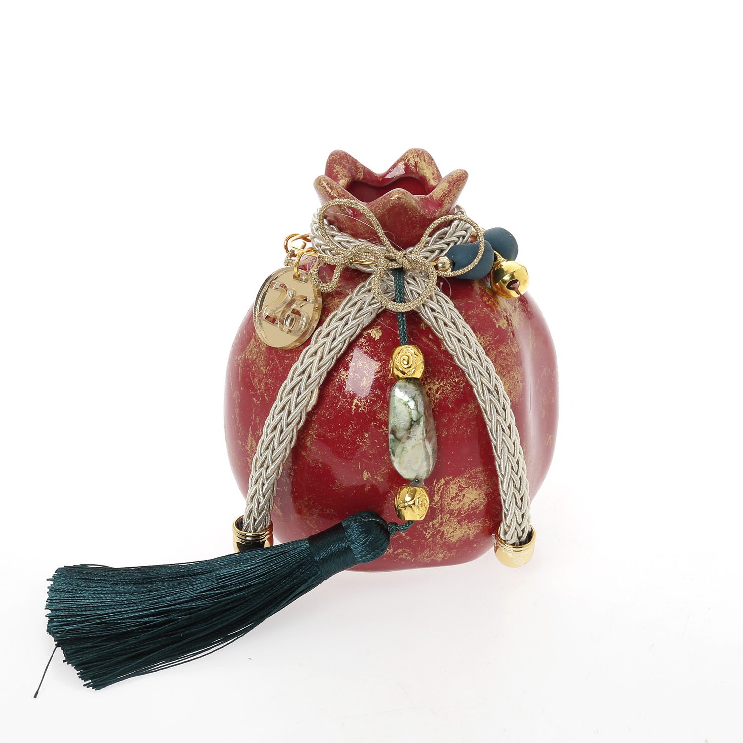 Ρόδι κόκκινο μαύρο πορσελάνη στολισμένο στεφάνι 9,5cm