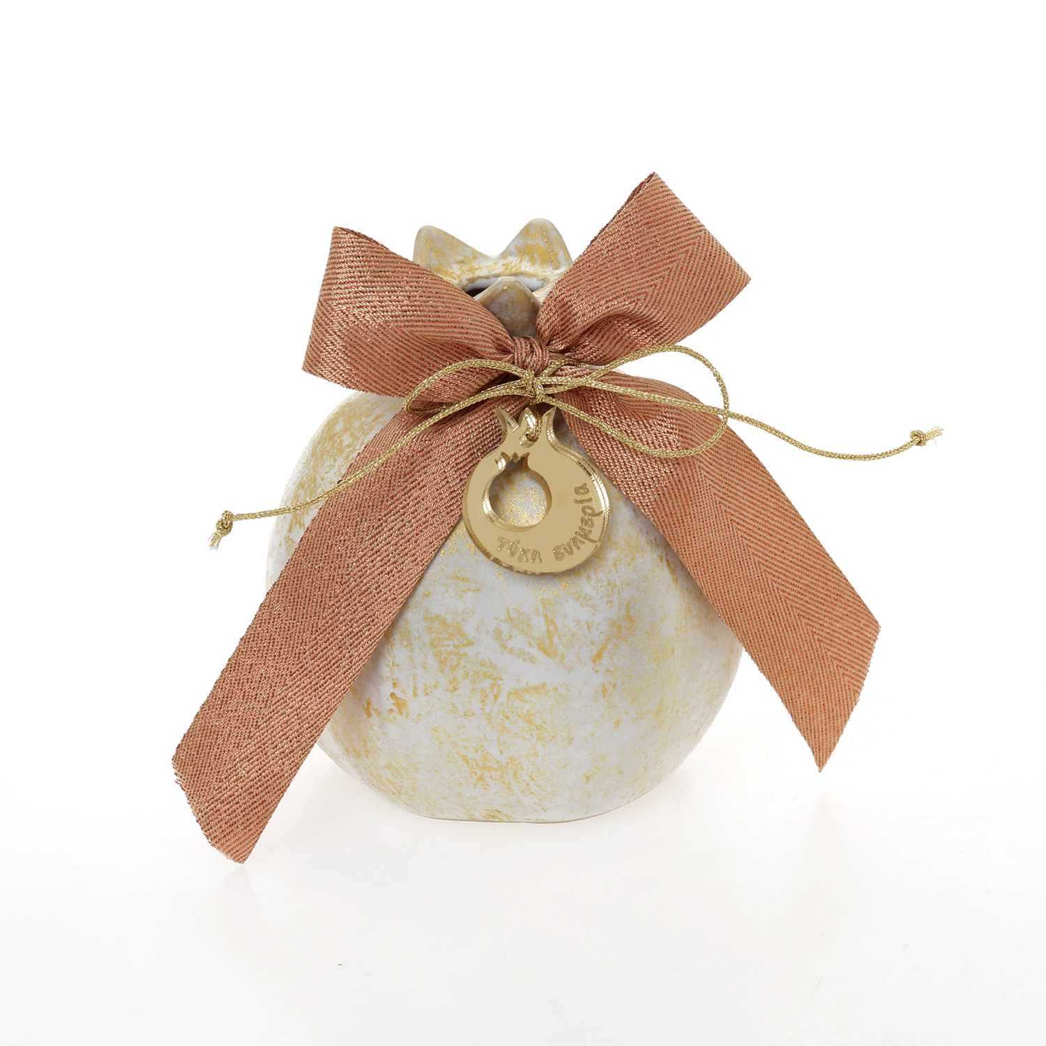 Ρόδι λευκό πορσελάνη πατίνα χρυσή στολισμένο ρόδι ευχές 9,5cm