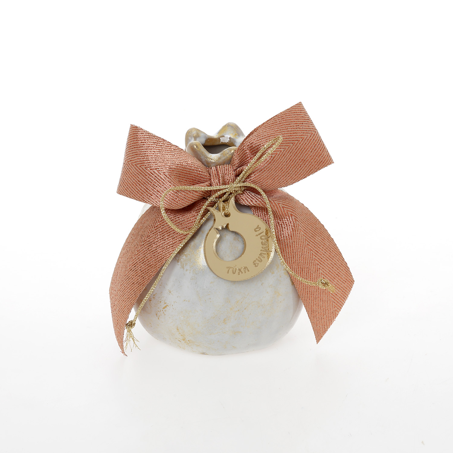 Ρόδι λευκό πορσελάνη πατίνα χρυσή στολισμένο ρόδι ευχές 7,5cm