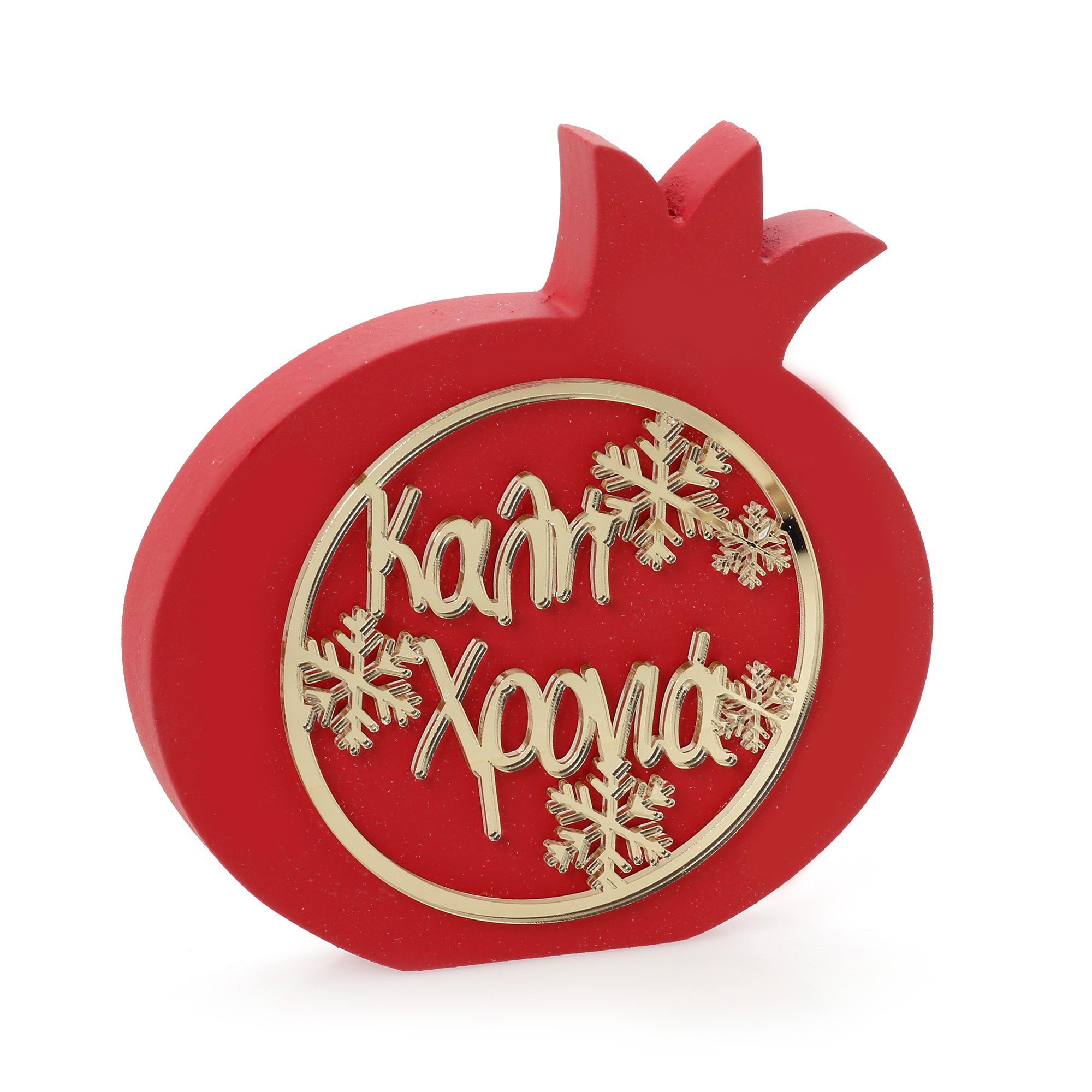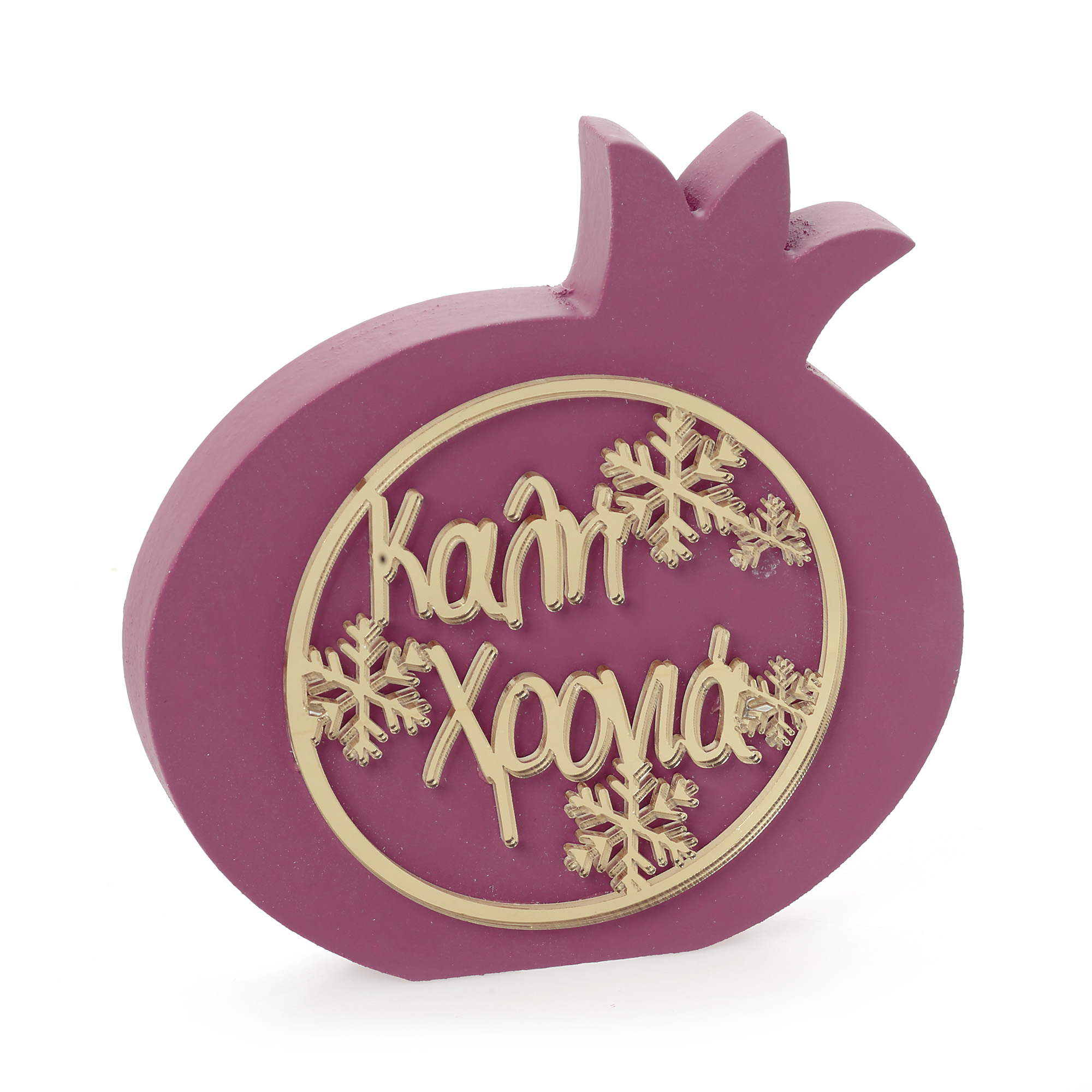 Ρόδι πλάγιο ξύλινο καλή χρονιά σε δύο διαστάσεις (10 cm και 15 cm) και σε διάφορα χρώματα.