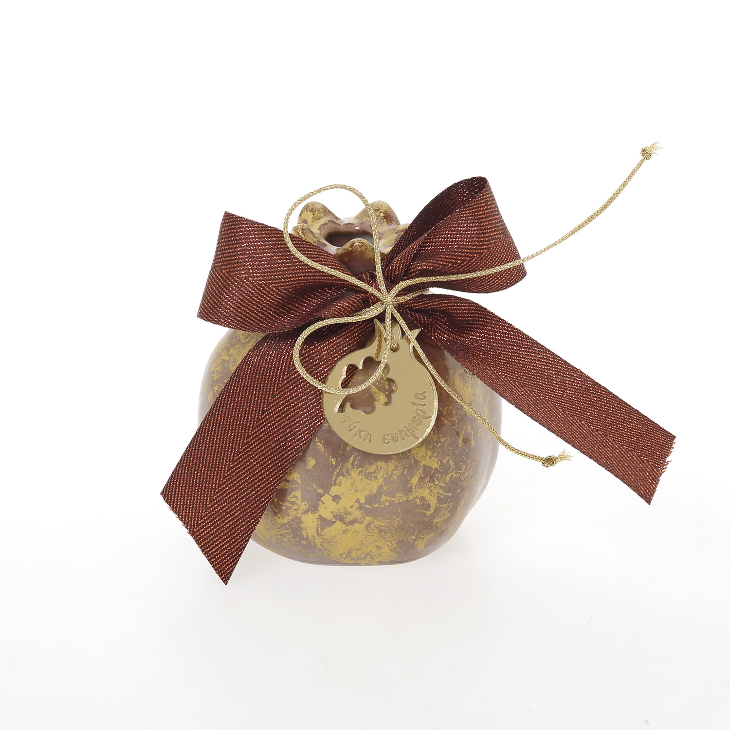 Ρόδι σάπιο μήλο πορσελάνη πατίνα χρυσή στολισμένο ρόδι ευχές 7,5cm