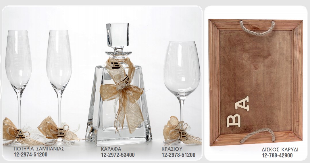 Σετ γάμου 12-2972 , ποτήρι κρασιού και σαμπάνιας, καράφα και δίσκος,