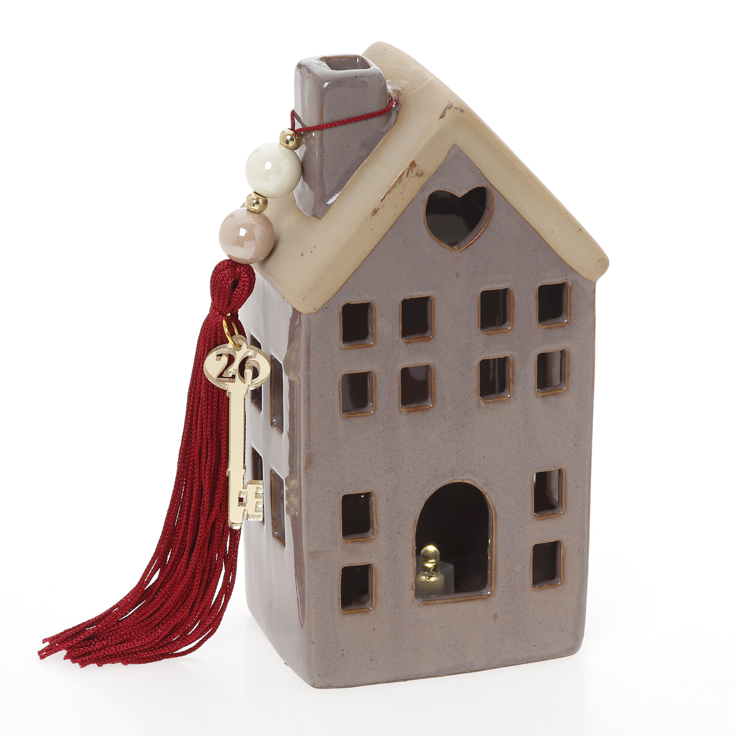 Σπίτι πορσελάνη με κόκκινη φούντα και κλειδί σε δύο διαστάσεις (10cm και 15cm)