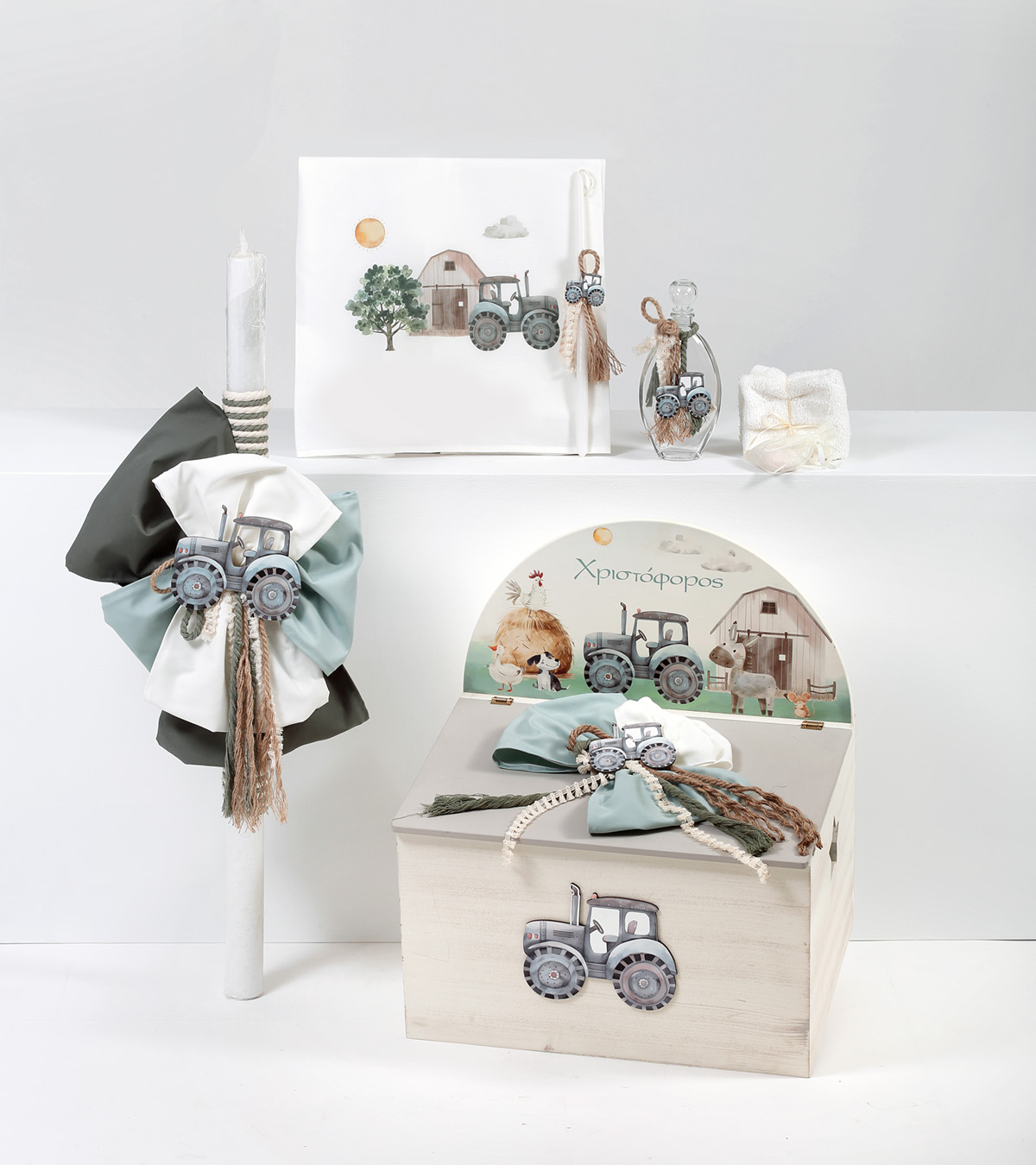 Πακέτο βάπτισης αγόρι με θέμα Τρακτέρ φάρμα ζωάκια