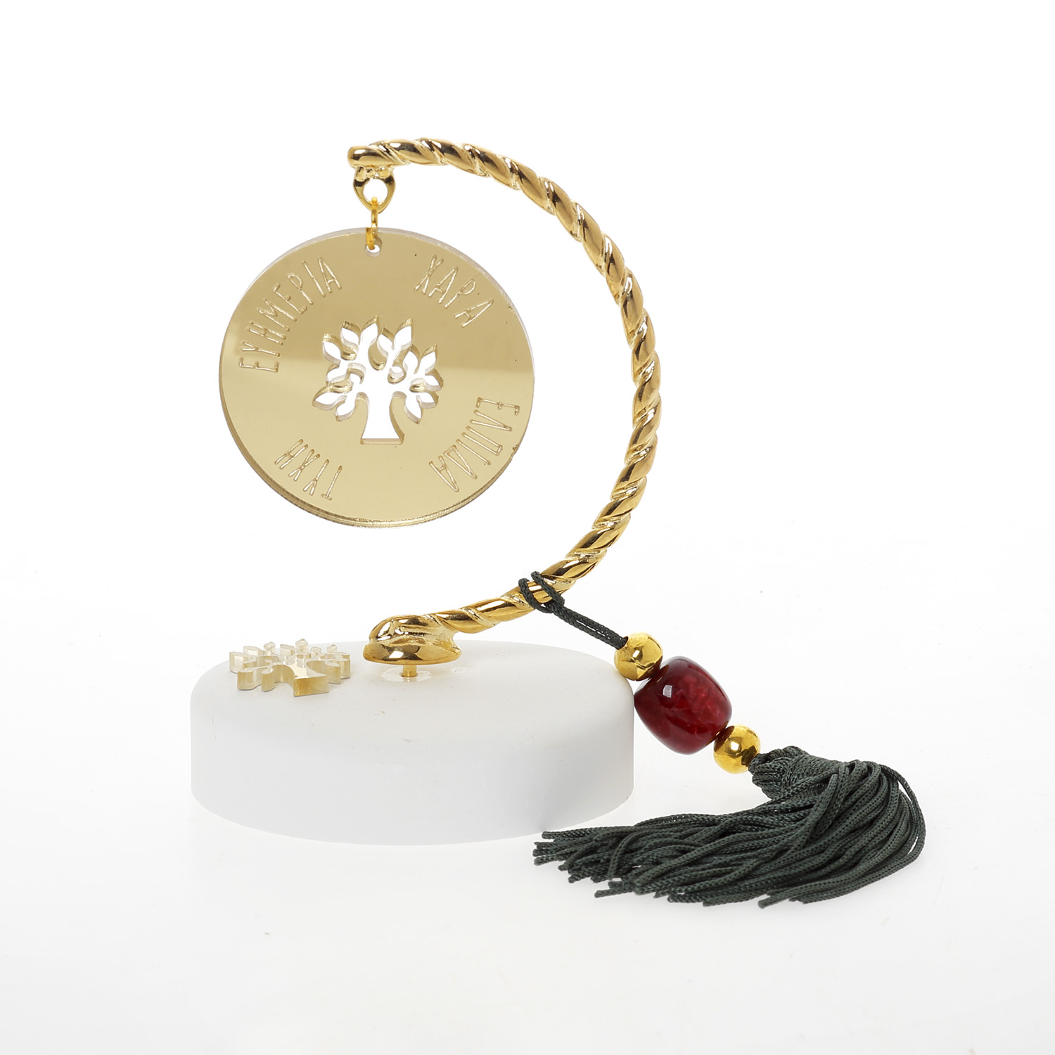 Βραχάκι οβάλ γύψος στρογγυλό δέντρο ζωής ευχές Plexiglass πράσινη φούντα