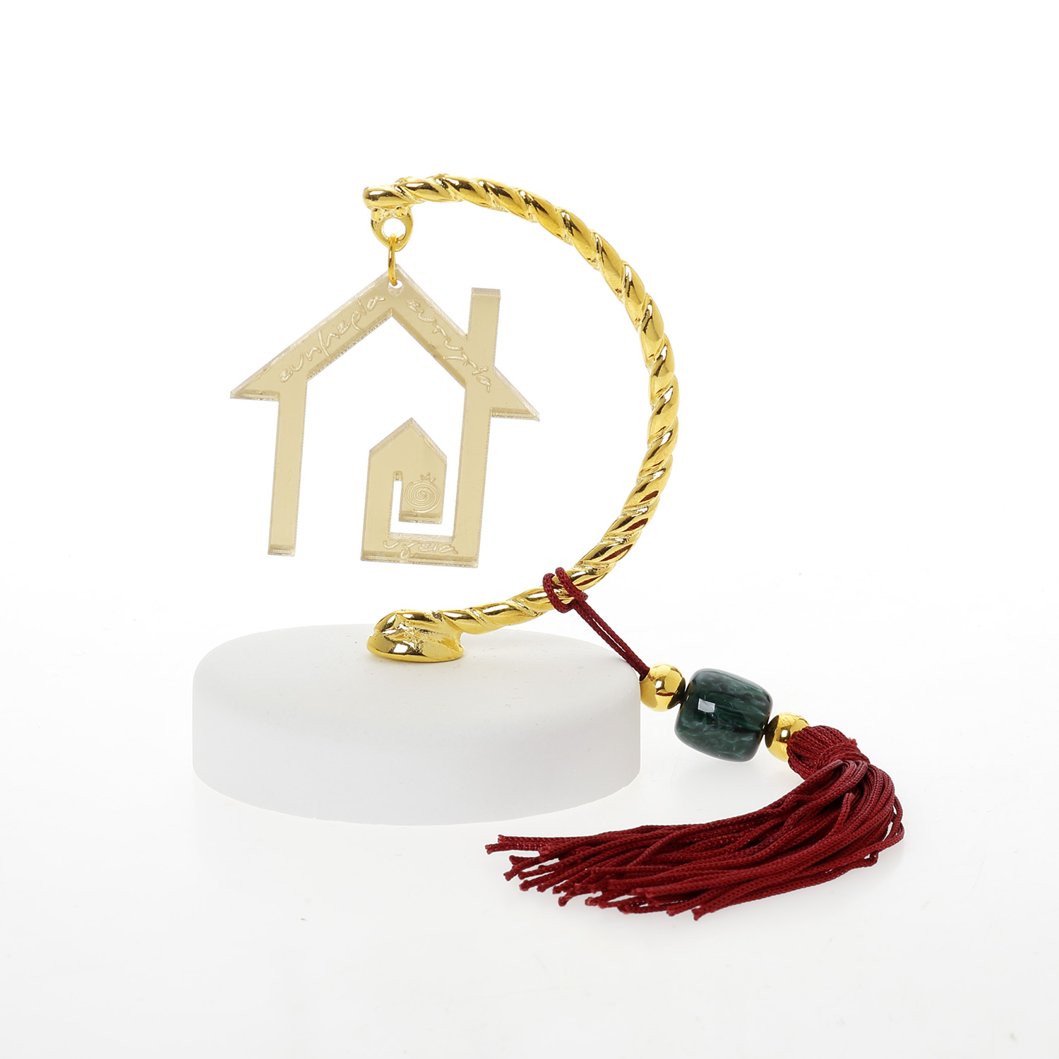 Βραχάκι οβάλ γύψος σπίτι καμινάδα ρόδι Plexiglass με κόκκινη φούντα