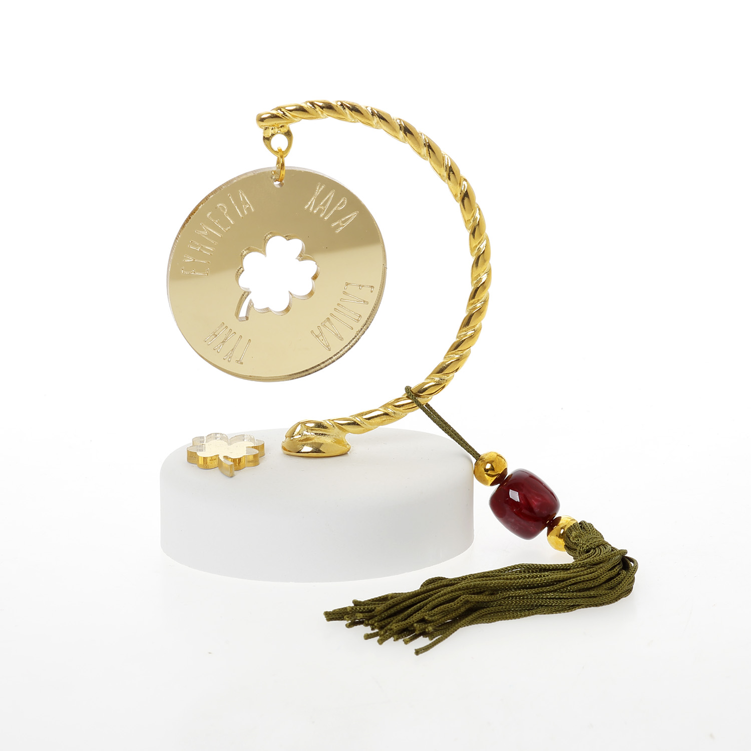 Βραχάκι οβάλ γύψος στρογγυλό τριφύλλι ευχές Plexiglass με λαδί φούντα