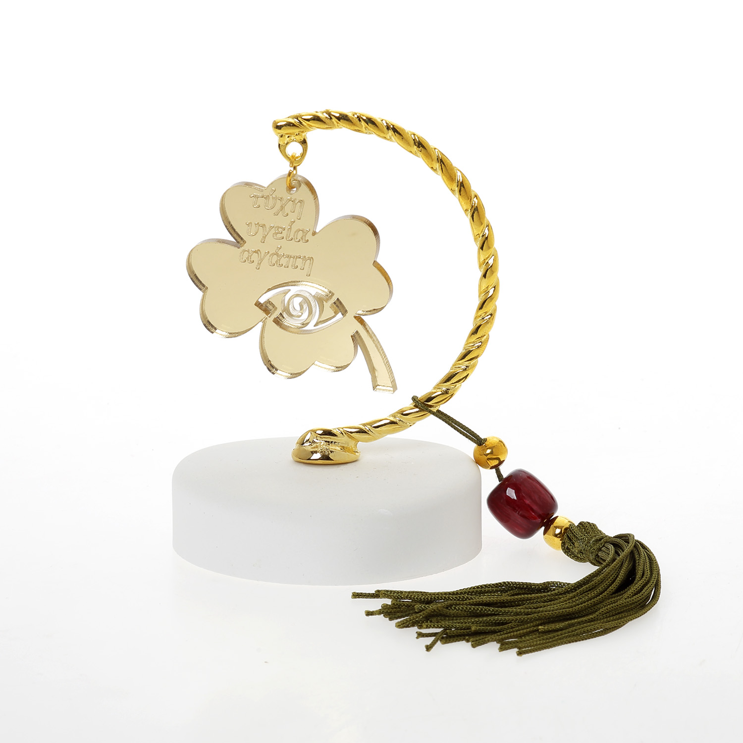 Βραχάκι οβάλ γύψος τριφύλλι μάτι ευχές Plexiglass με λαδί φούντα