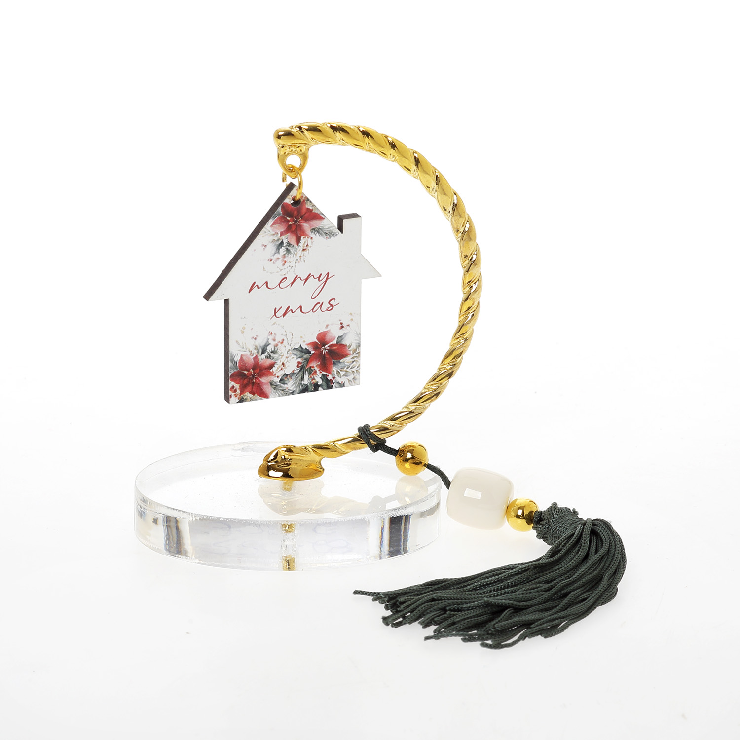 Βραχάκι οβάλ plexi σπίτι merry christmas με λαδί φούντα