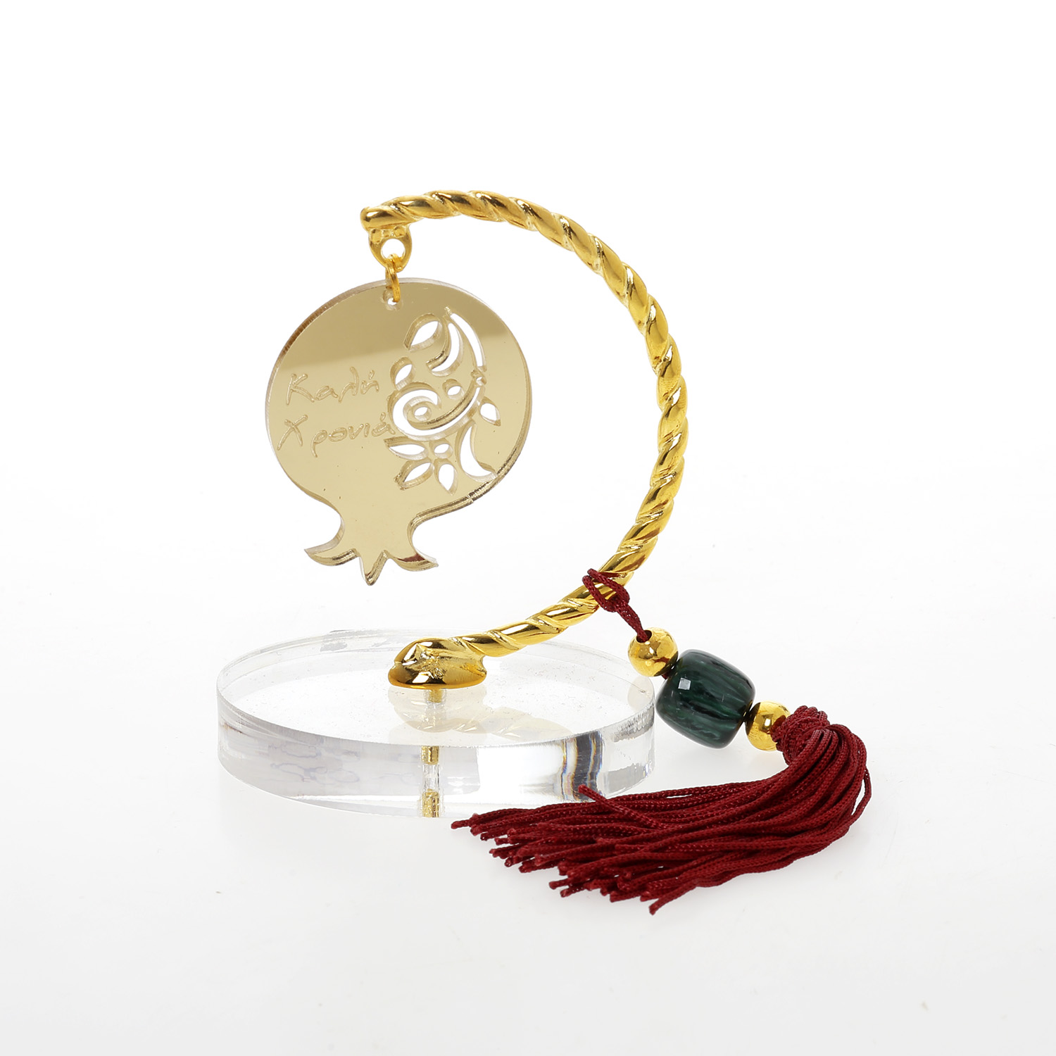 Βραχάκι οβάλ plexi ρόδι ανάποδο καλή χρονιά Plexiglass με κόκκινη φούντα