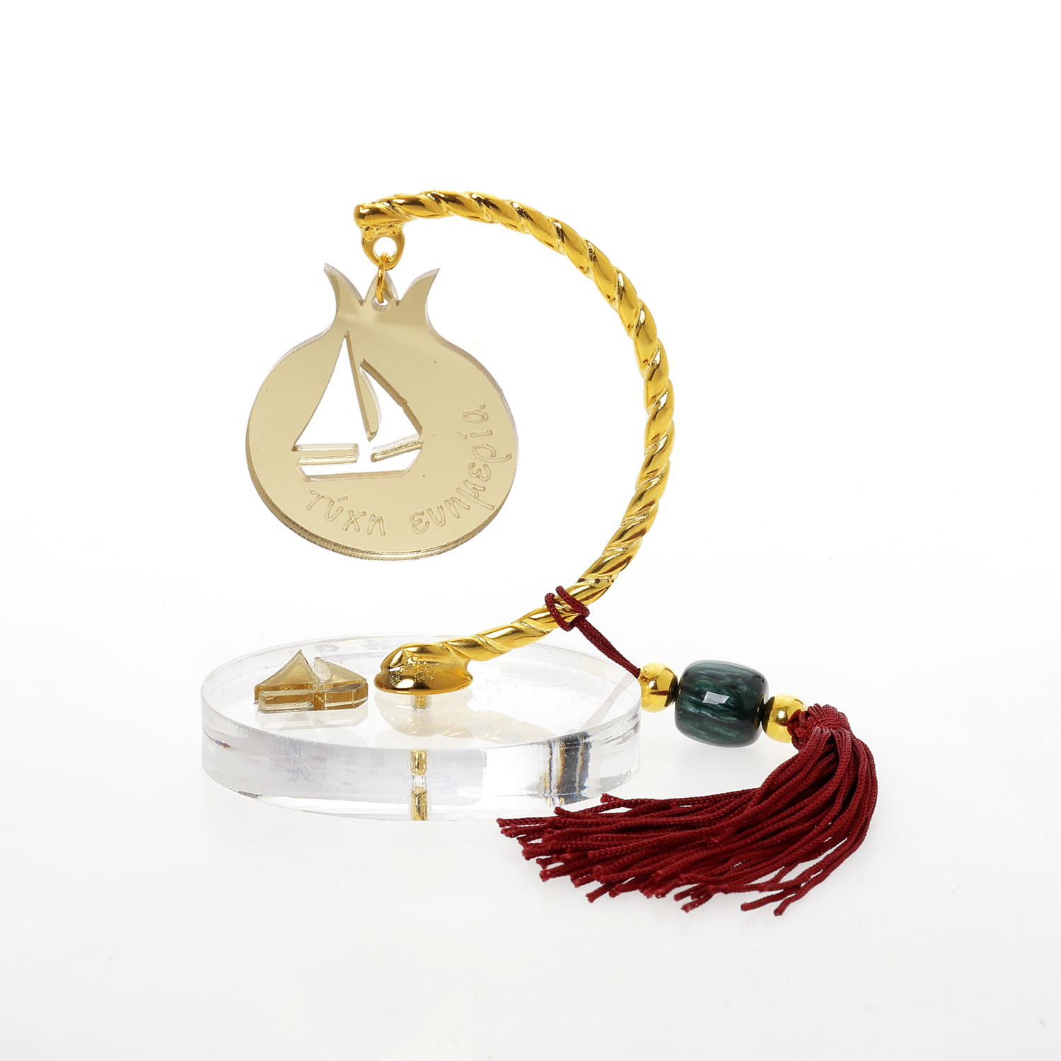 Βραχάκι οβάλ plexi ρόδι καράβι τύχη ευημερία Plexiglass με κόκκινη φούντα