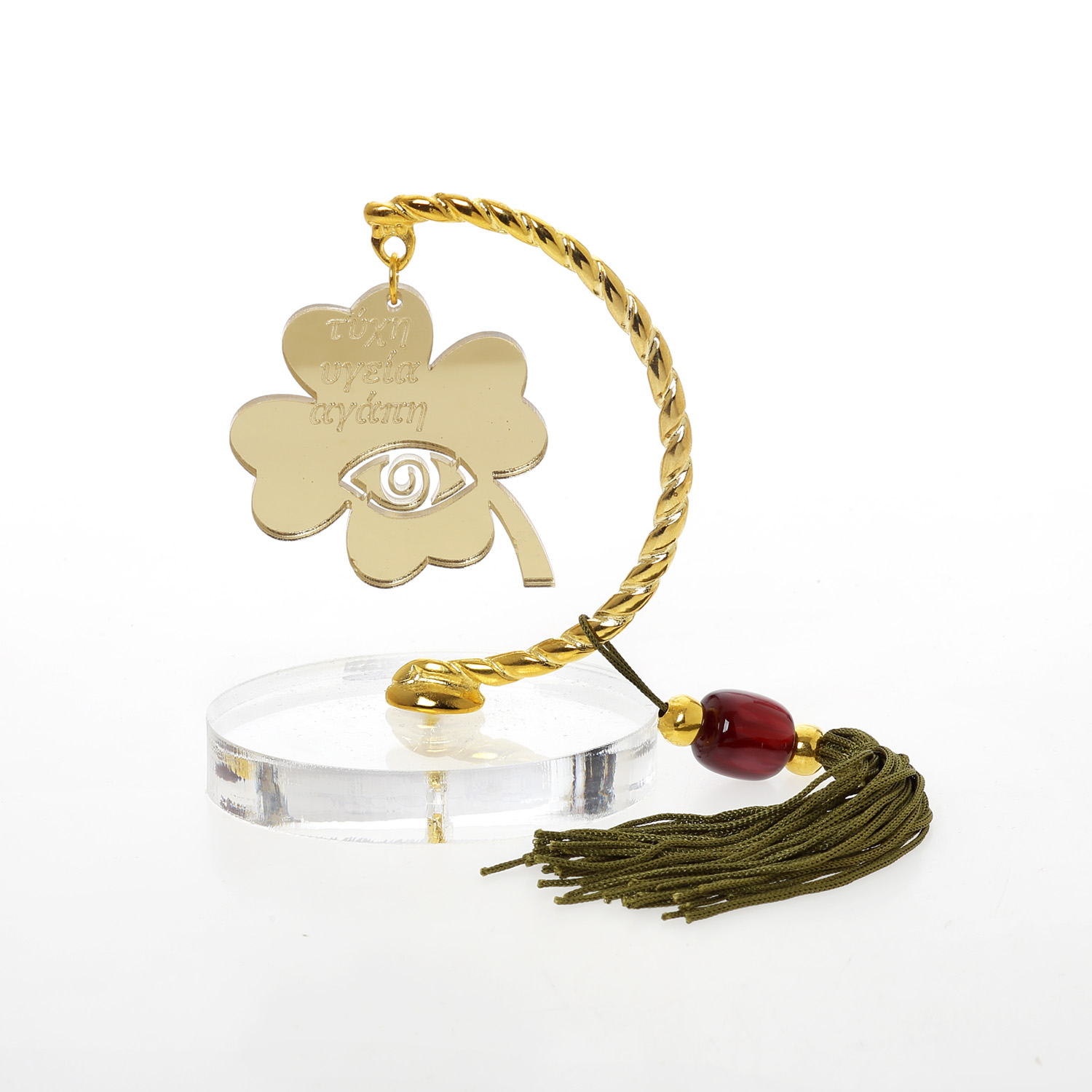 Βραχάκι οβάλ plexi τριφύλλι μάτι ευχές Plexiglass με λαδί φούντα