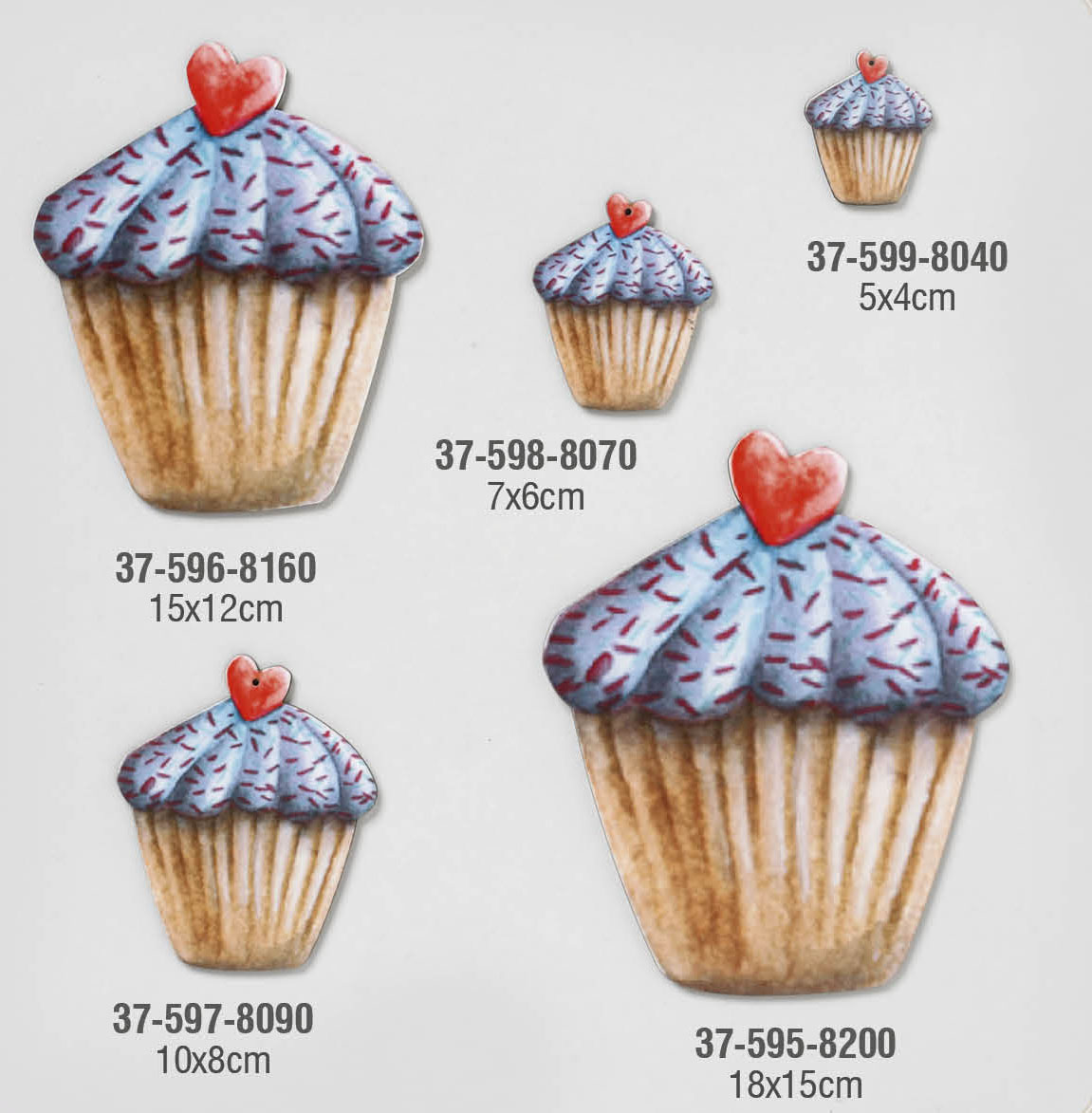 Ξύλινη Μπομπονιέρα Τυπωμένη 37-599 cupcake με καρδιά στην κορυφή