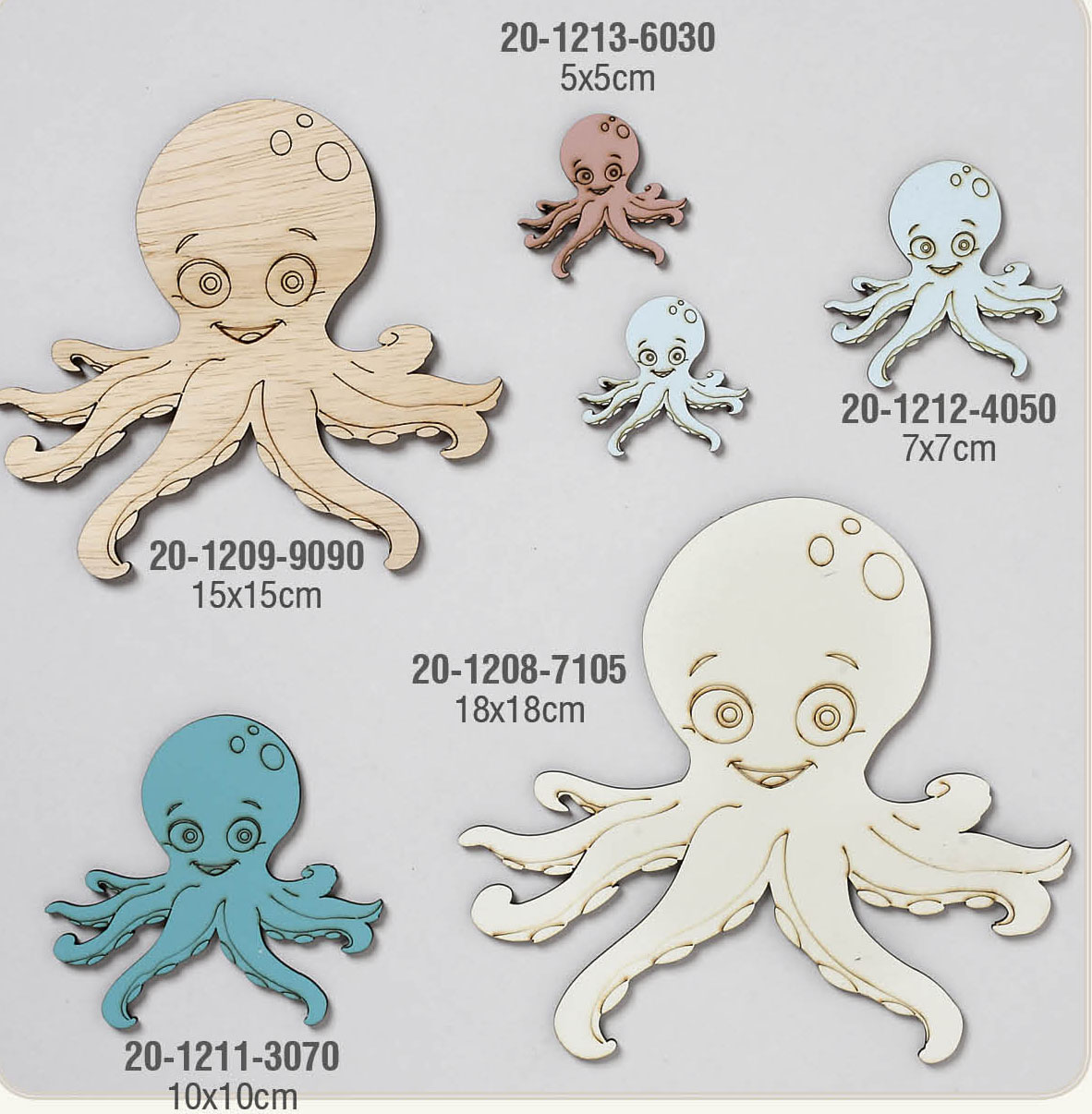 Ξύλινη Μπομπονιέρα Χαραγμένη 20-1213 με θέμα χταπόδι (ζωάκια της θάλασσας)