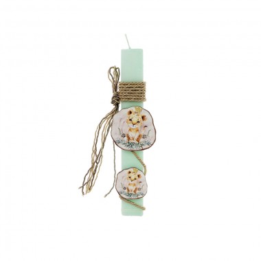 Στολισμένη πασχαλινή λαμπάδα Ζωάκια φλωράλ σιέλ